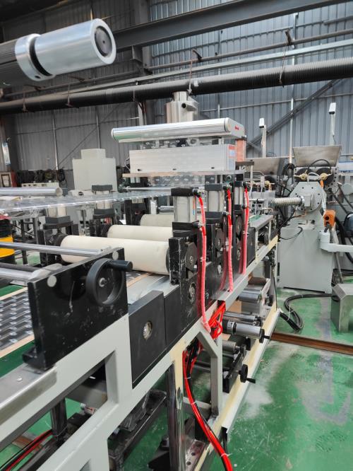 智能化與高精度是該生產(chǎn)線的核心競爭力。設(shè)備集成PLC控制系統(tǒng),可實時監(jiān)測溫度、壓力、速度等關(guān)鍵參數(shù),實現(xiàn)膠量精準(zhǔn)控制與涂膠軌跡優(yōu)化,確保膠片厚度均勻性與尺寸精度。強(qiáng)制喂料機(jī)與雙螺桿擠出結(jié)構(gòu)的科學(xué)搭配,讓丁基膠原料混煉充分,物理化學(xué)性能穩(wěn)定,滿足輪胎氣密層、光伏組件密封、建筑防水等多場景的嚴(yán)苛要求。生產(chǎn)線產(chǎn)能可達(dá)100-150公斤/小時,適配寬8mm、厚0.6mm等多種規(guī)格產(chǎn)品,實現(xiàn)一出5條的高效生產(chǎn)。
